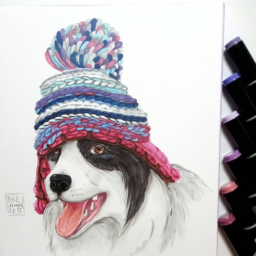 Собака маркерами