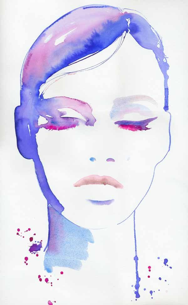 ![Акварельные рисунки лица]()