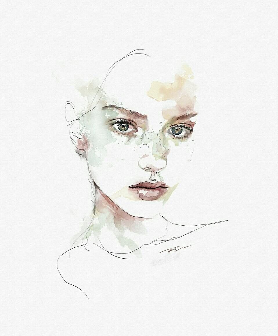 ![Лицо девушки акварелью]()