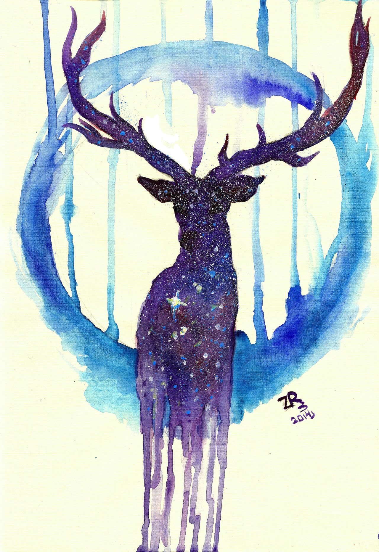 Олень гуашью