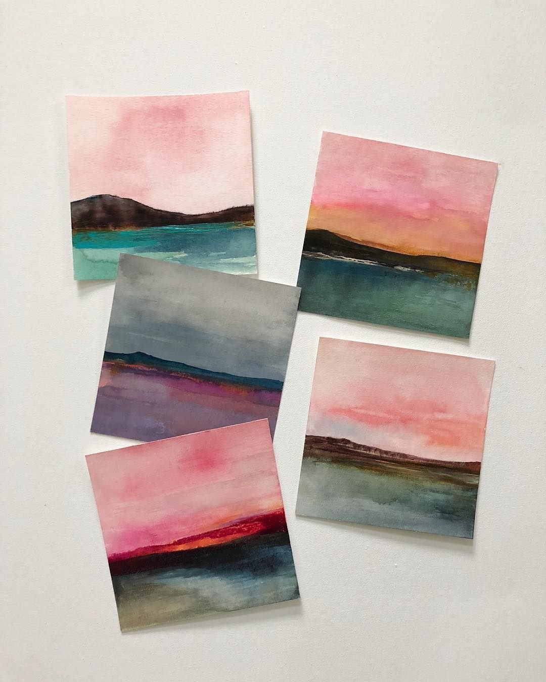Мини пейзажи акварелью легкие