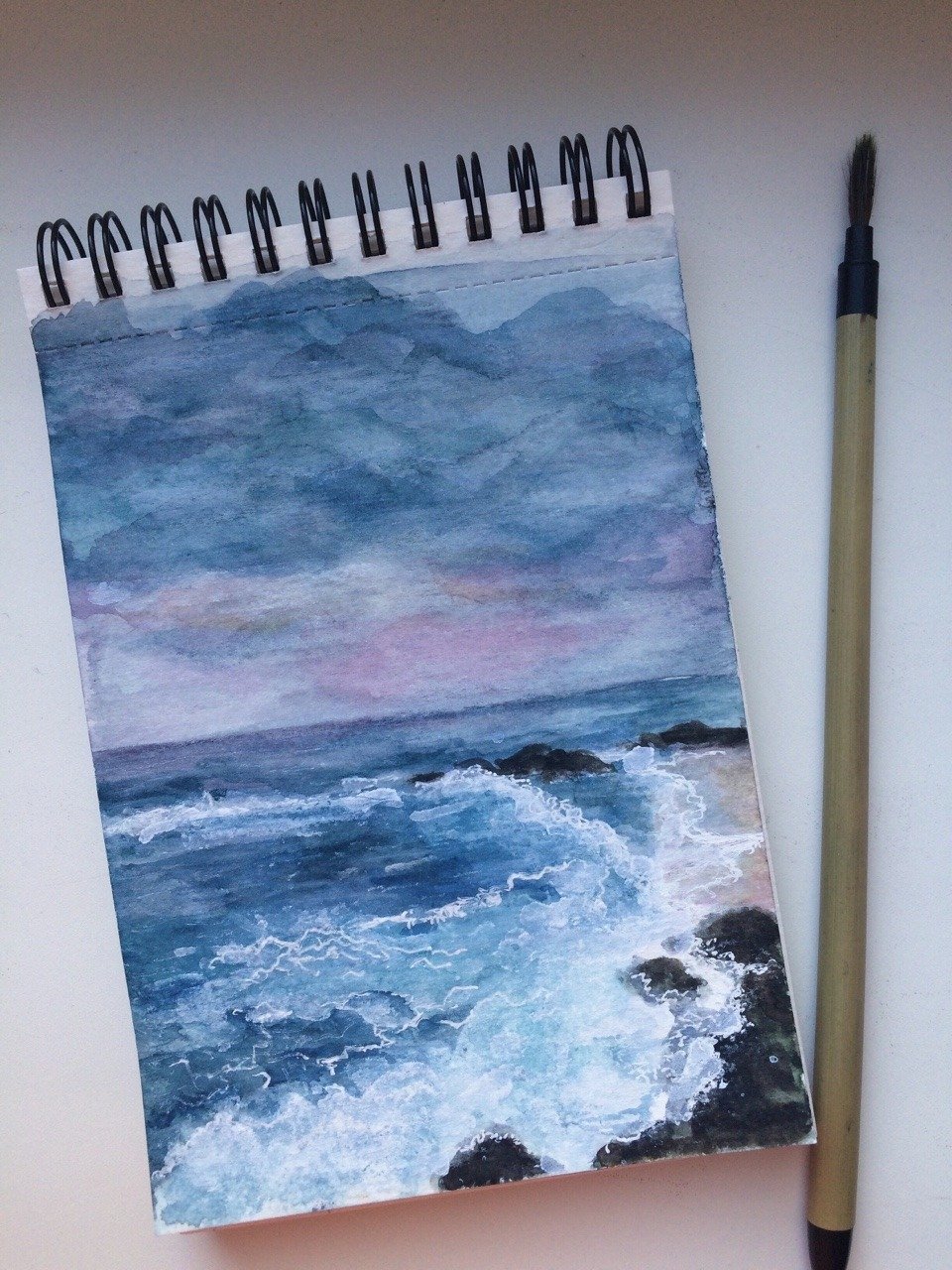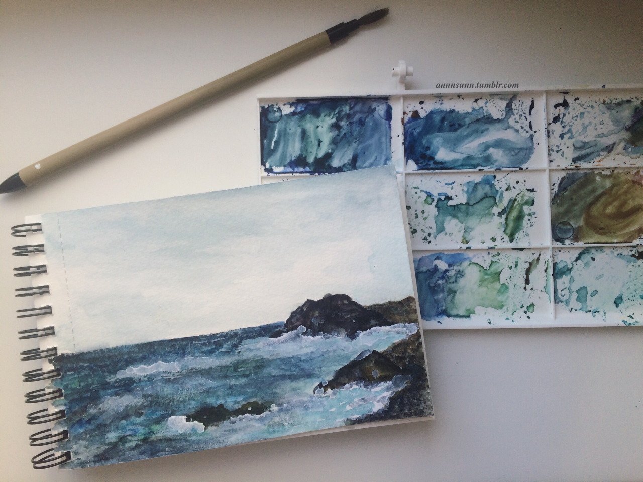 ![Рисование акварелью в скетчбуке]()