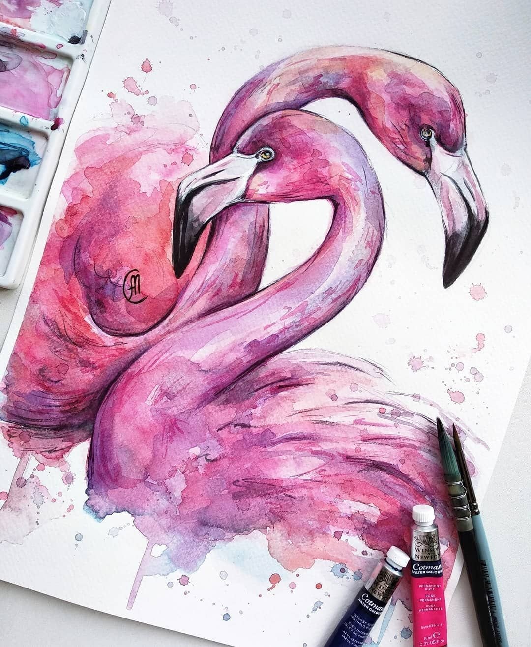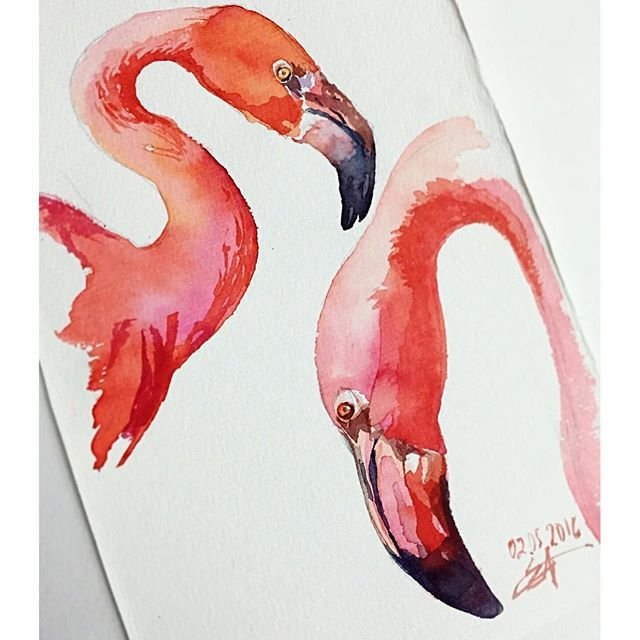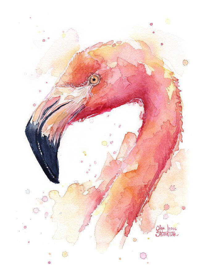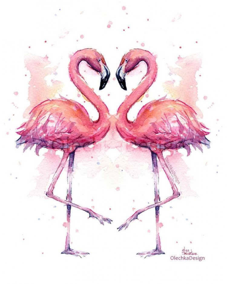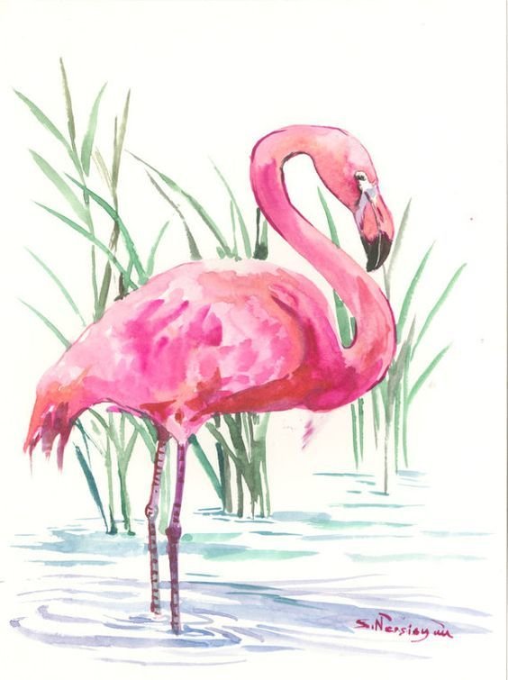 ![Фламинго картина акварелью]()
