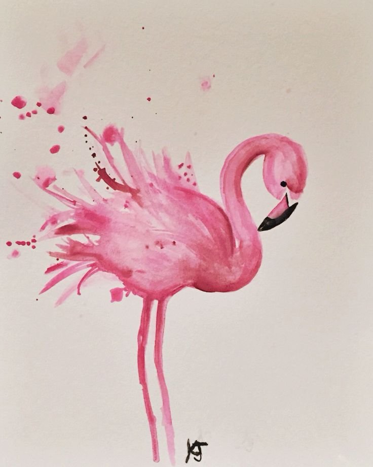 ![Рисунки акварелью для начинающих Фламинго]()