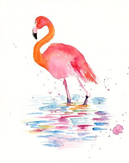 Рисунки акварелью для начинающих Фламинго