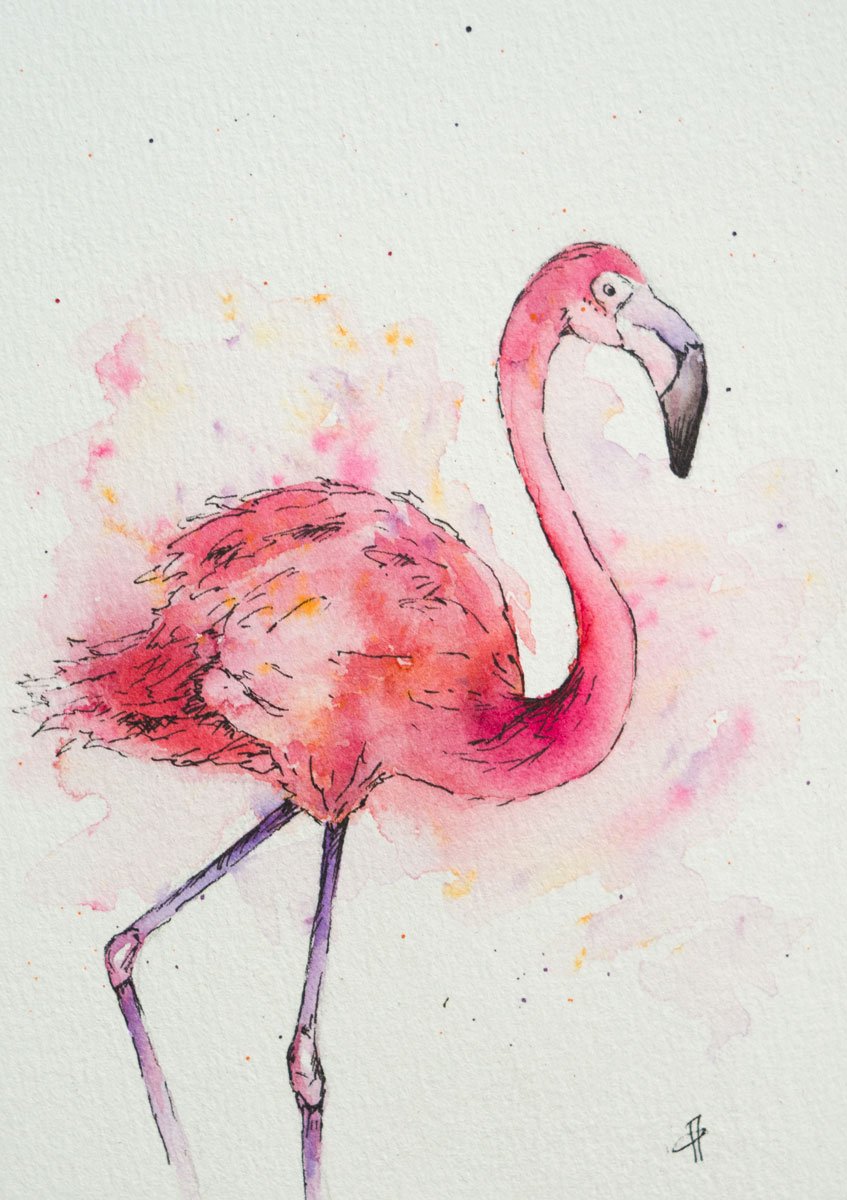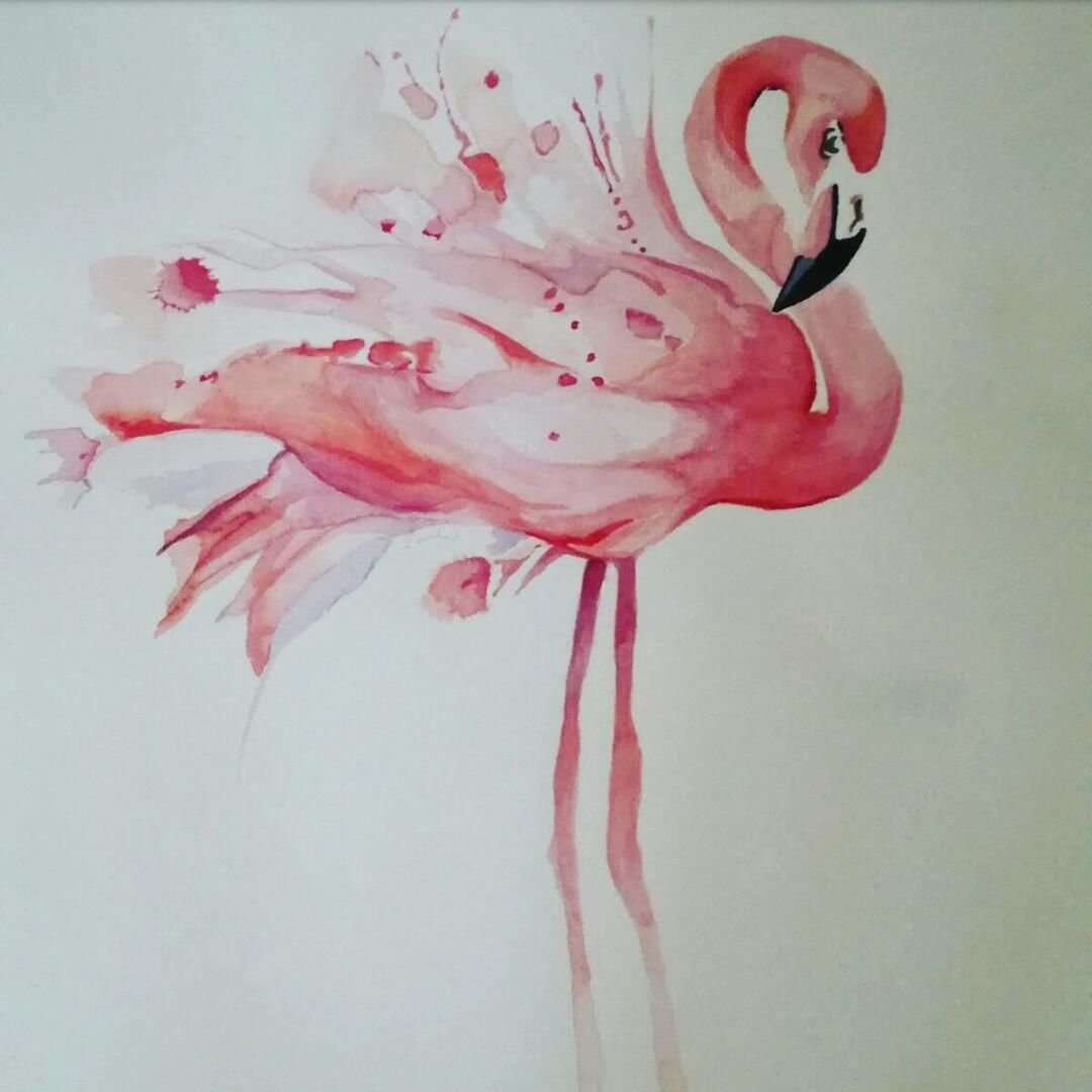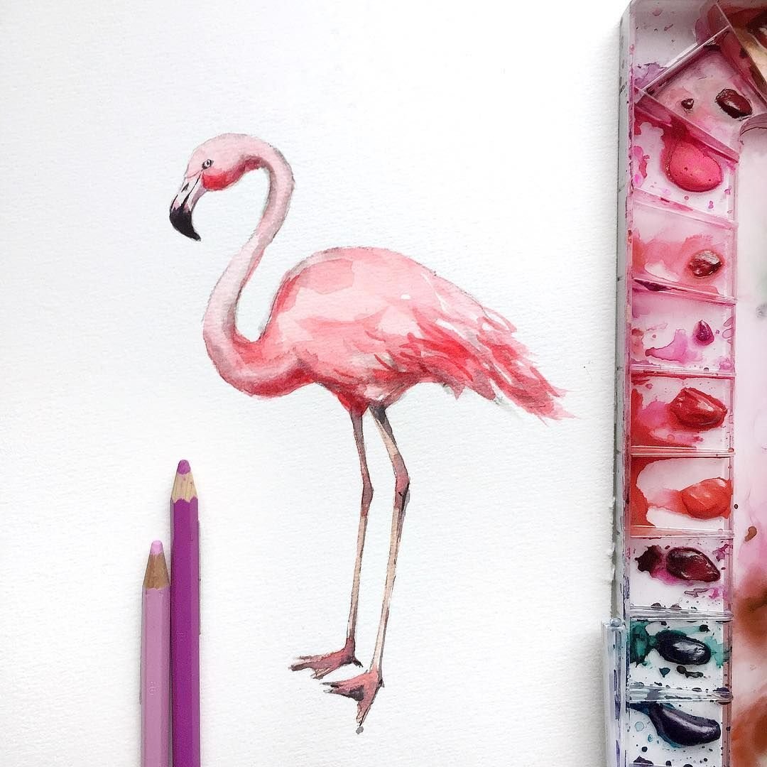![Фламинго рисунок акварелью]()