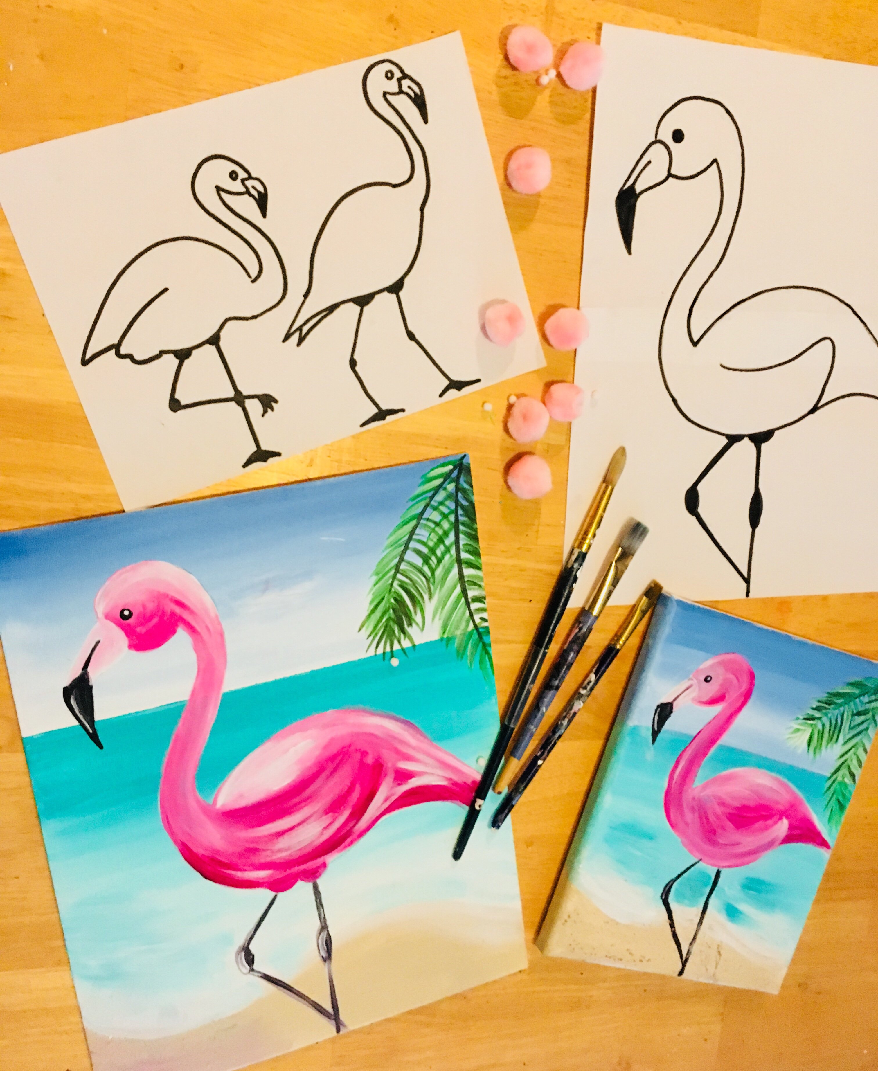Фламинго рисунок красками