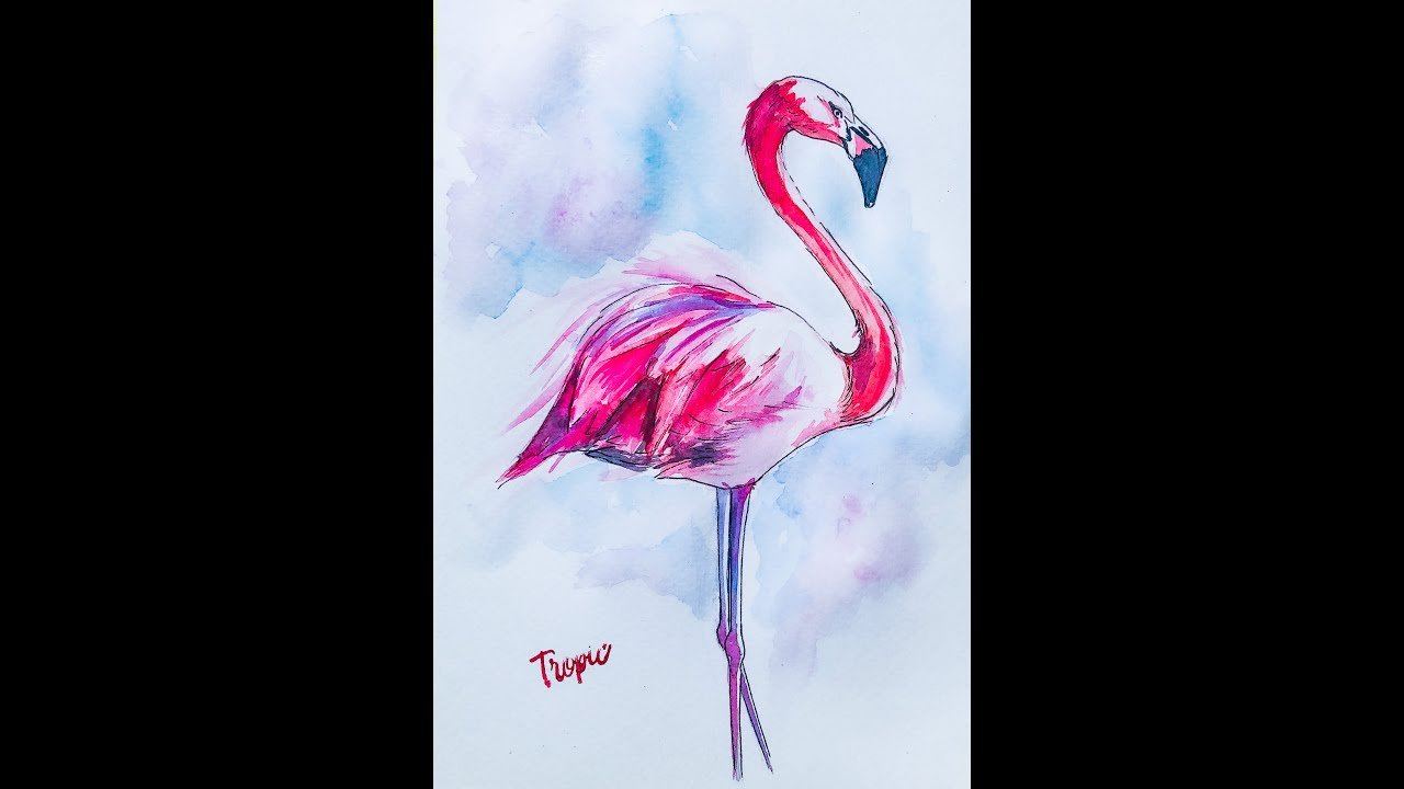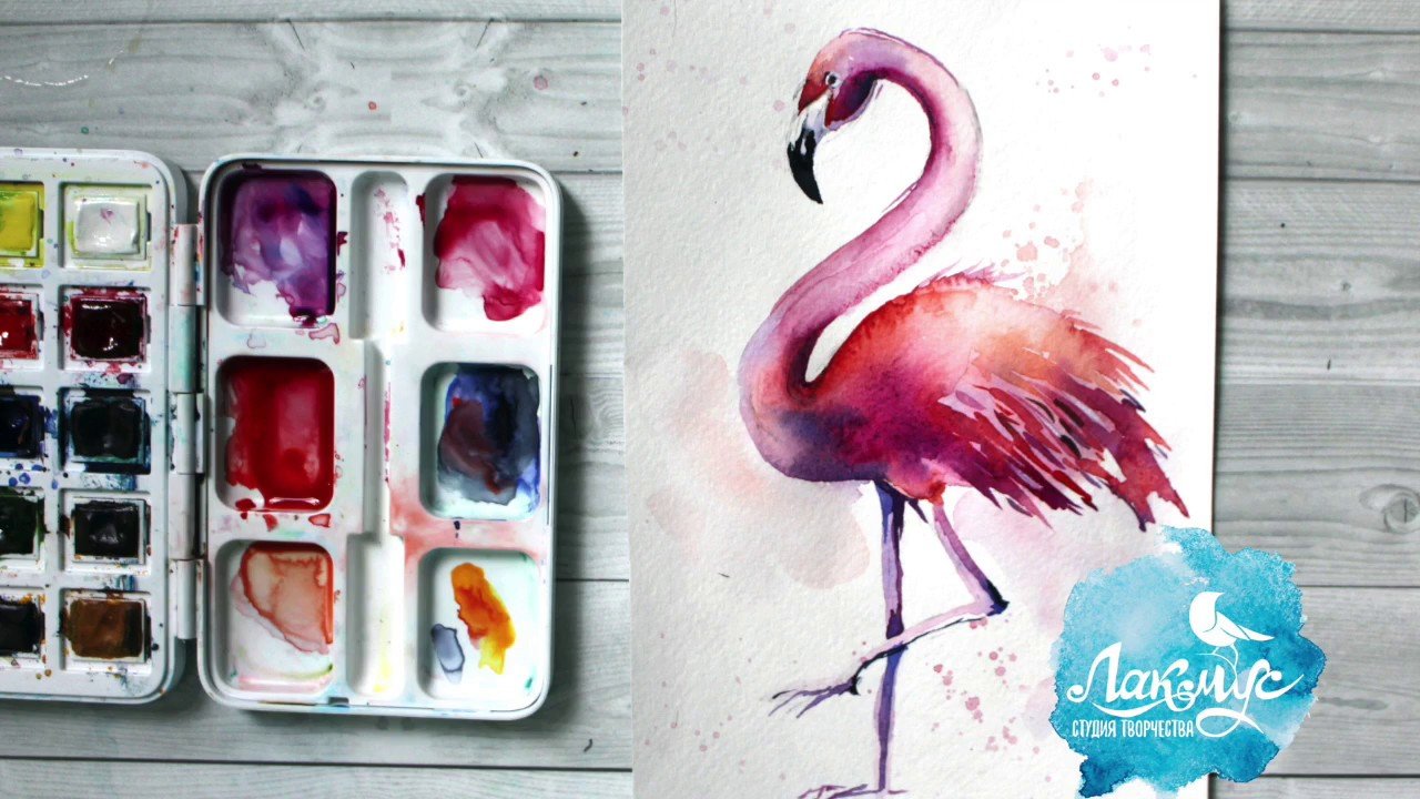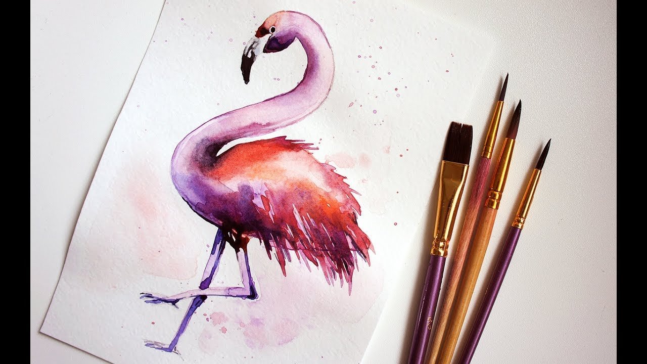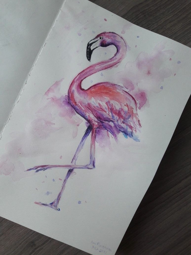 Фламинго легко акварелью для начинающих легкое