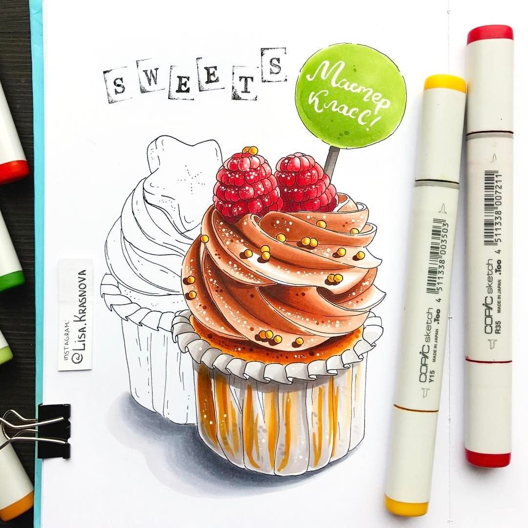 Рисование маркерами для скетчинга сладости
