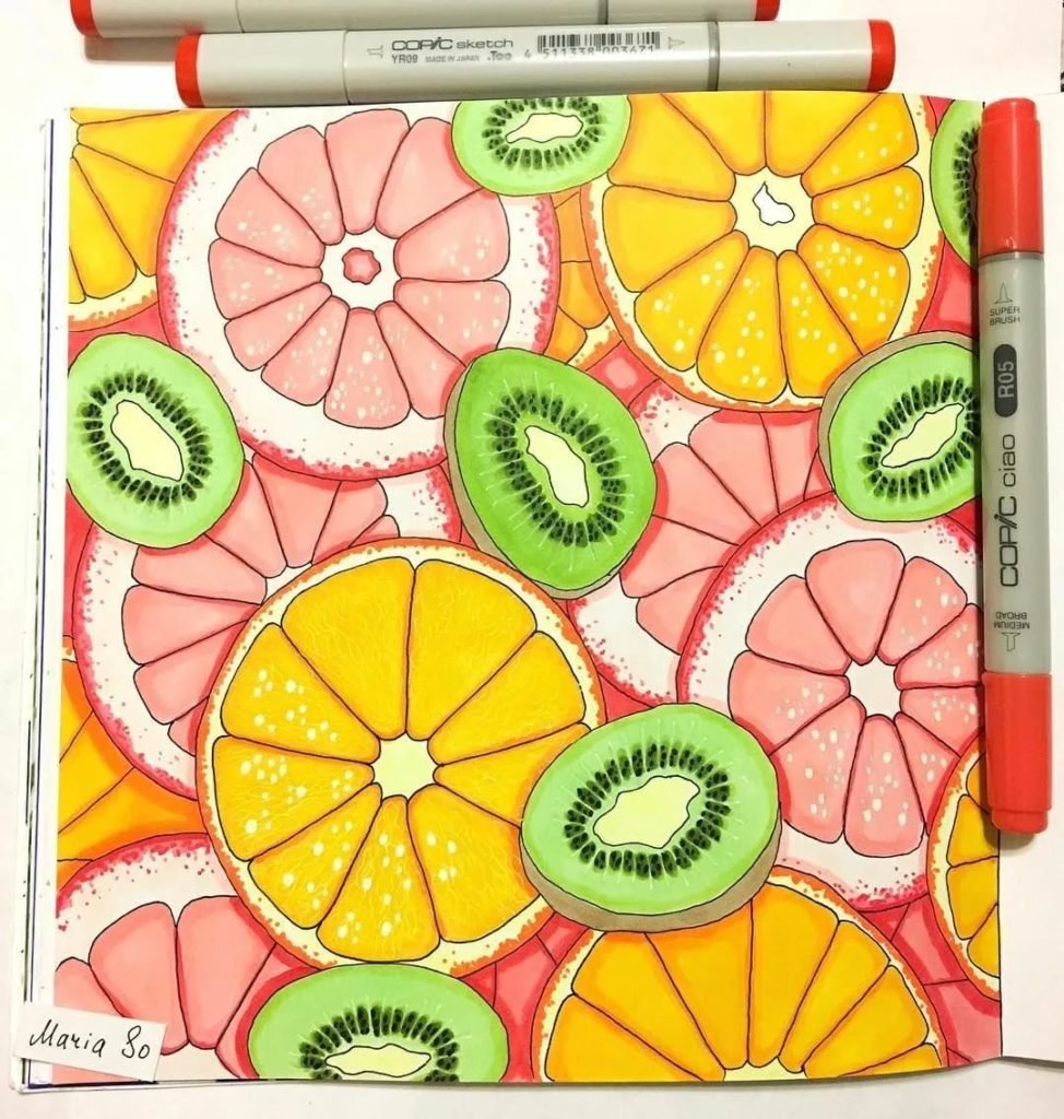 Фрукты скетч маркерами