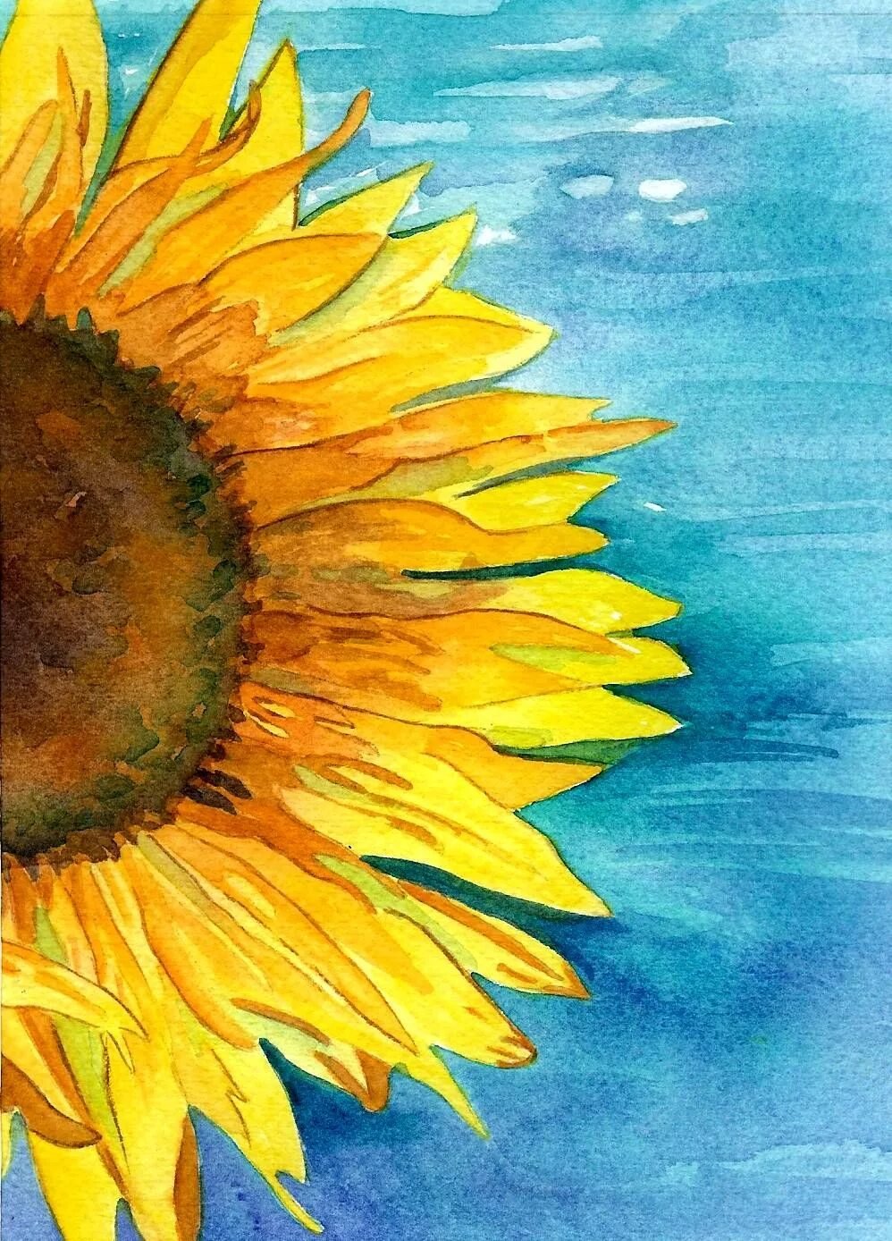 Подсолнух акварелью для начинающих