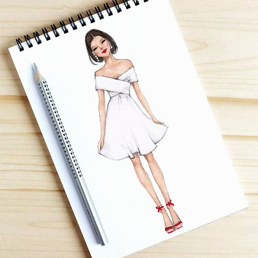 ![Скетчинг для начинающих платья]()
