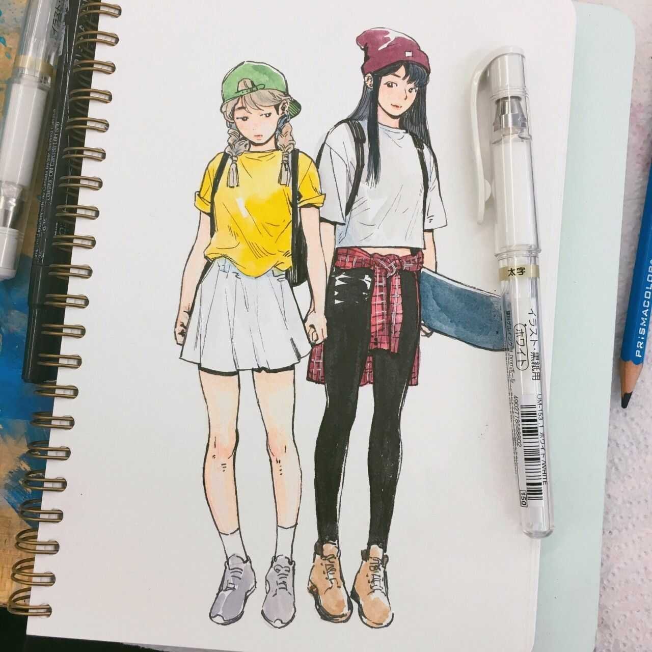 ![Скетчи спиртовыми маркерами]()