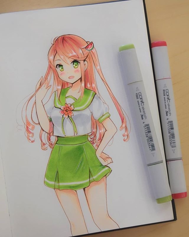 Аниме девочка маркерами