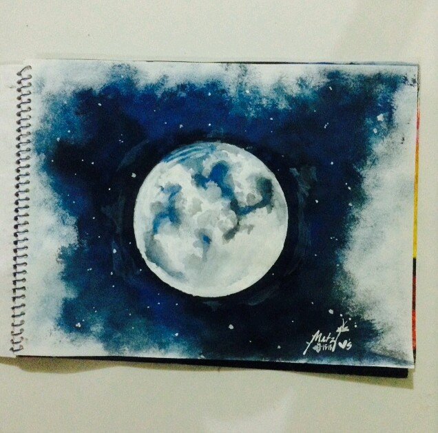 ![Луна в космосе гуашью]()