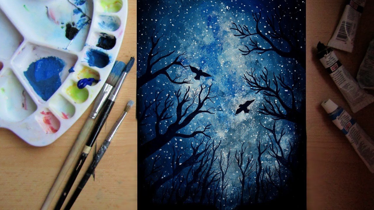 ![Ночное небо гуашью]()