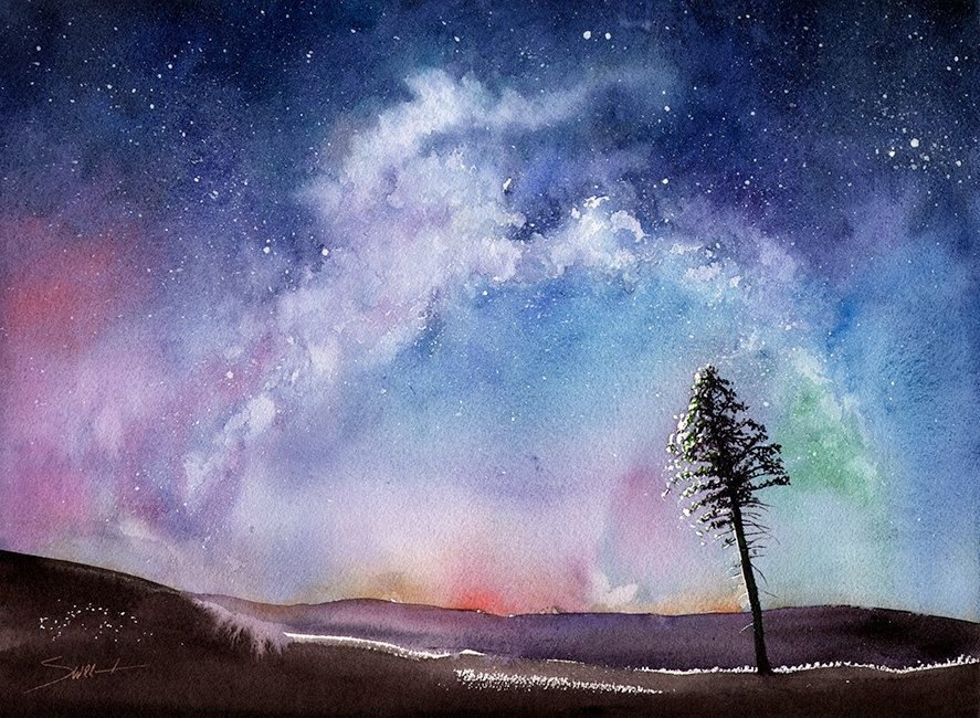 ![Звездное небо акварель]()