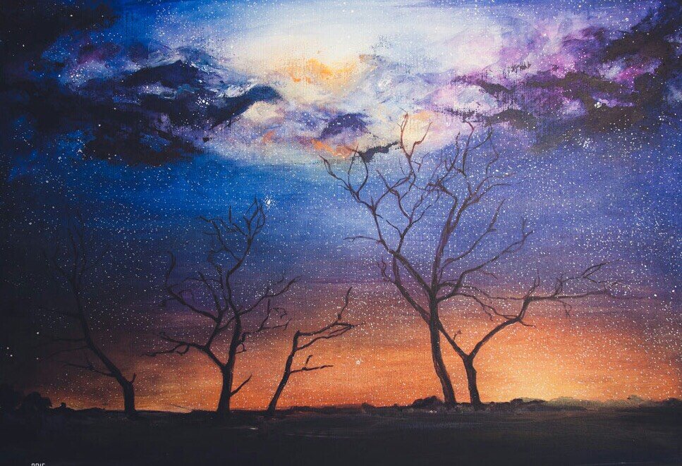 Ночное небо гуашью