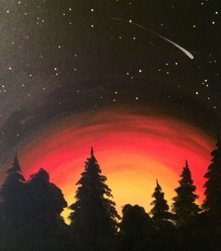 ![Ночной лес акрилом]()