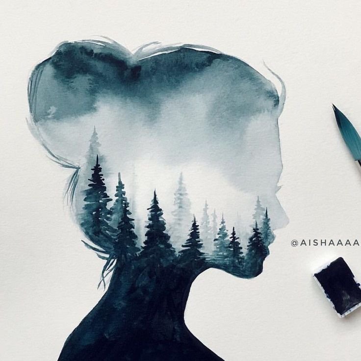 ![Минималистичный пейзаж акварелью]()