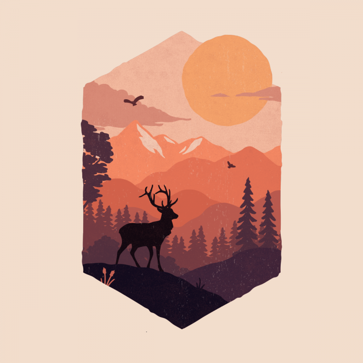 Минималистичный пейзаж акварелью