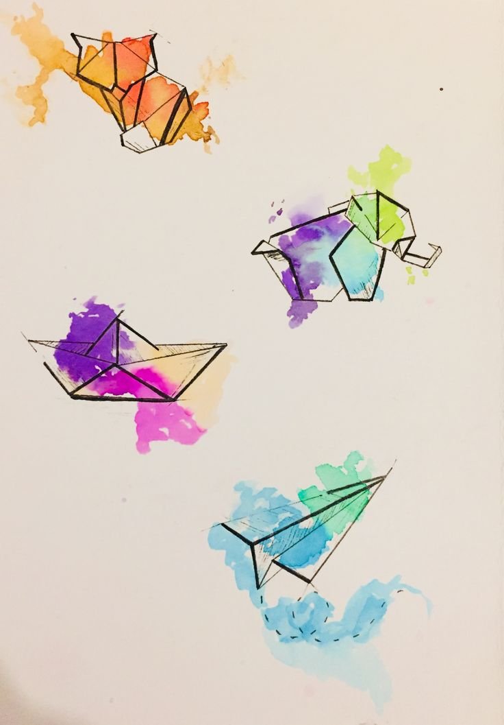![Тату оригами акварель]()