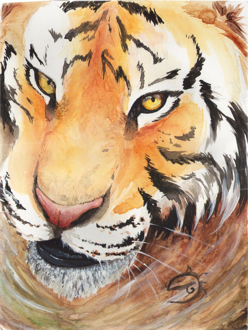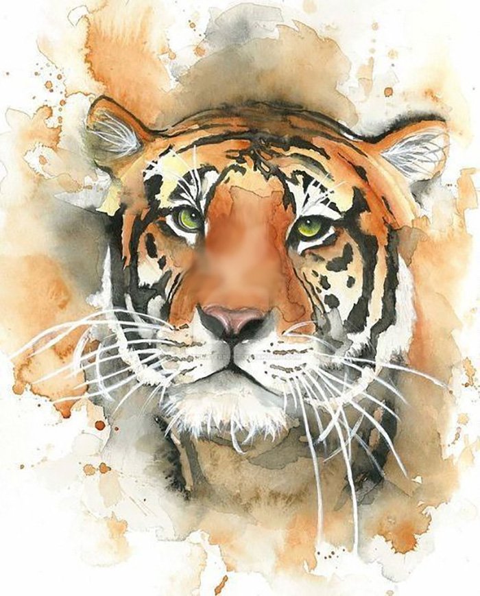 ![Морда тигра акварель]()