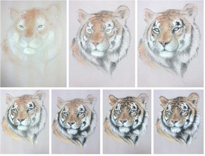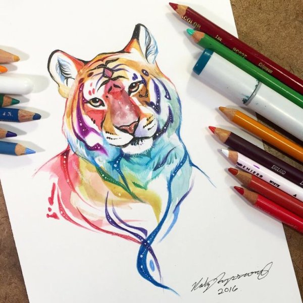 ![Тигр акварельными карандашами]()