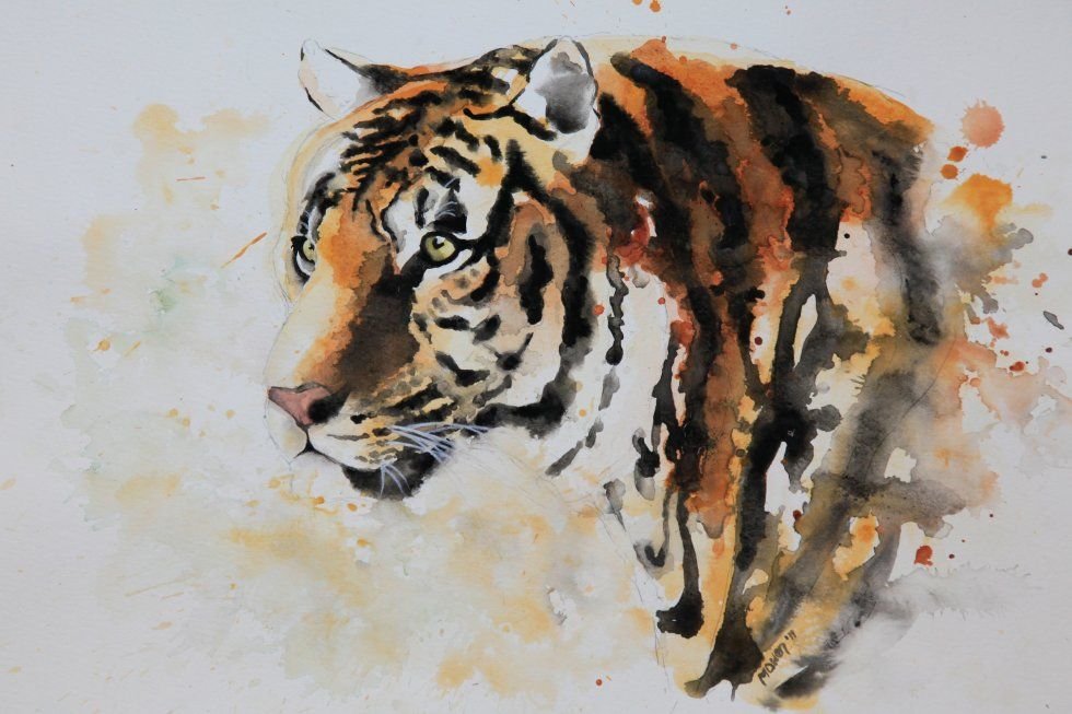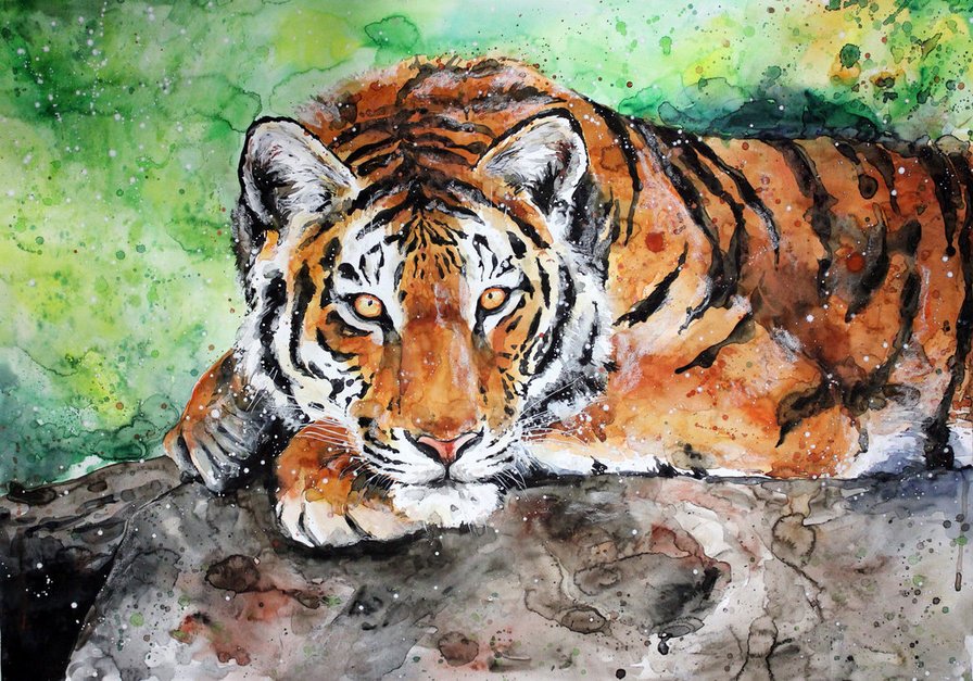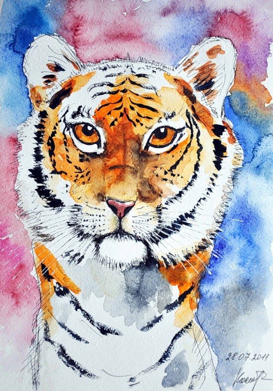 ![Тигр акварель]()