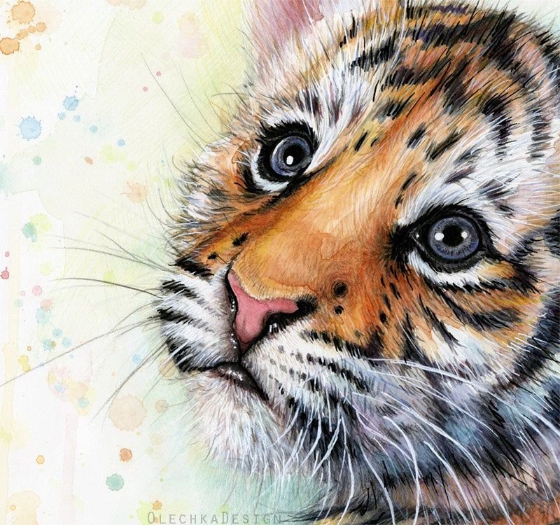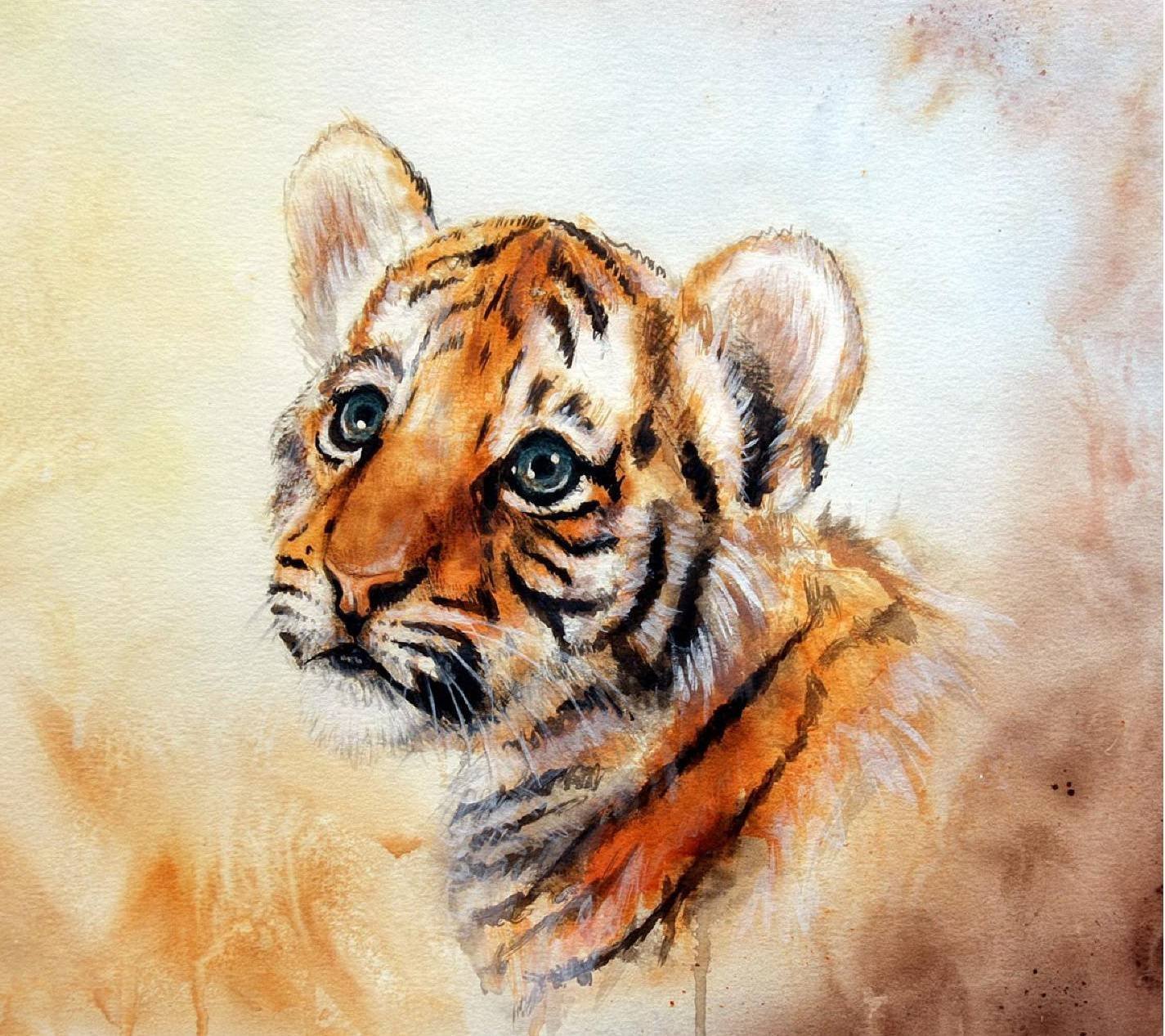 ![Тигренок акварель]()