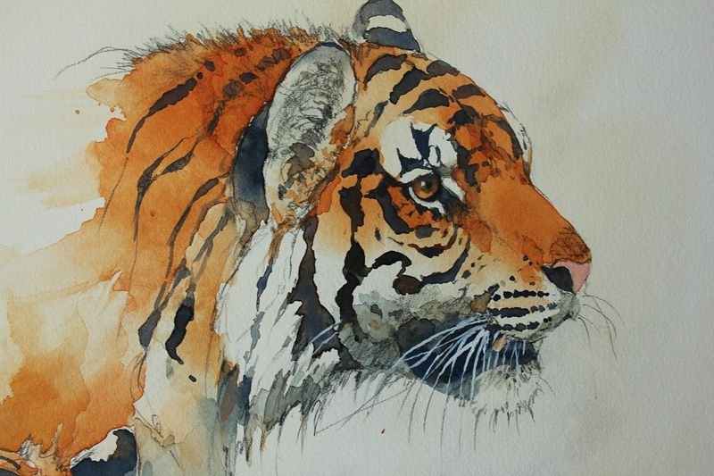 Тигр акварелью поэтапно