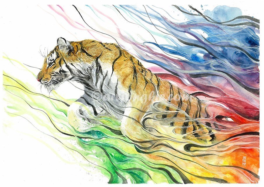 ![Тигр красками]()