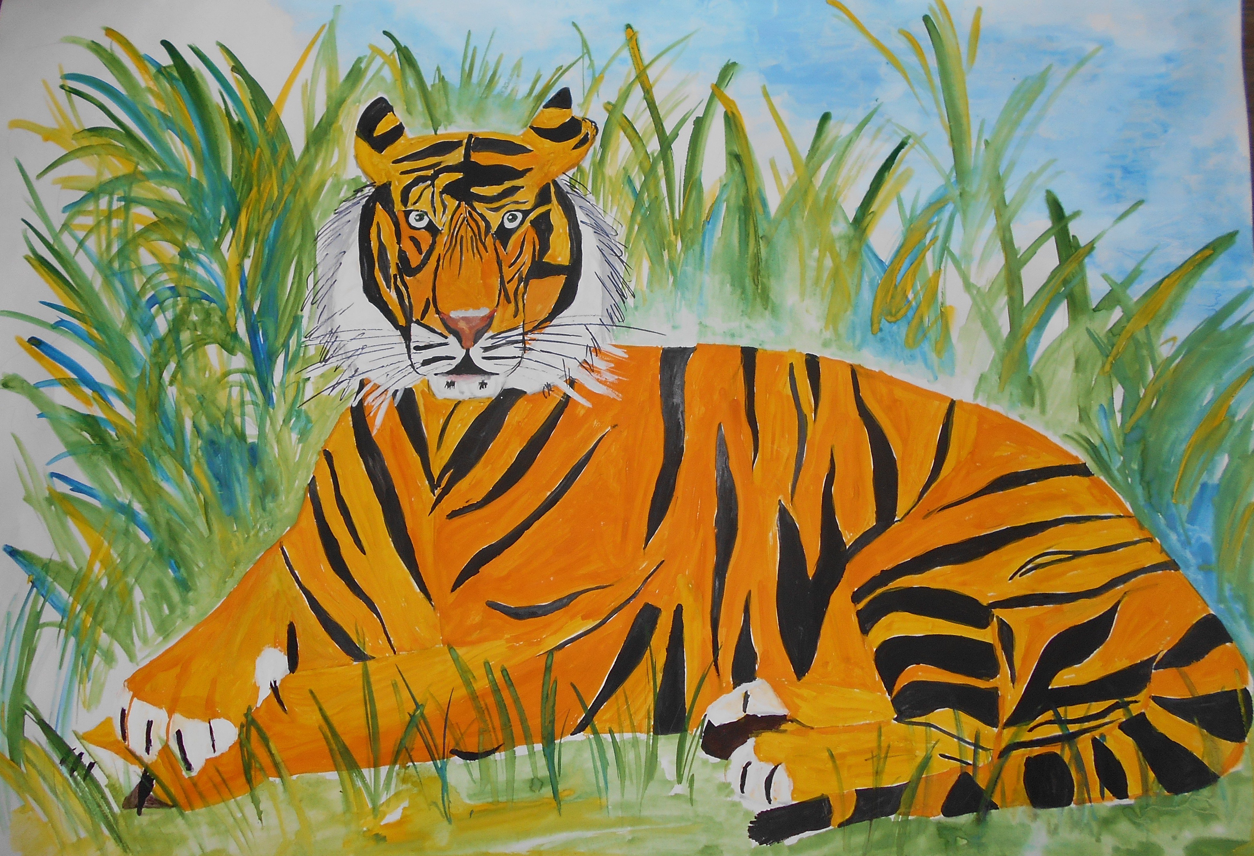 Тигр рисунок гуашью
