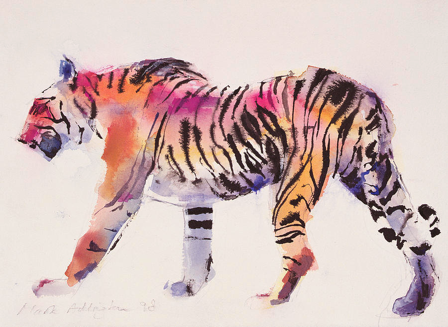 ![Тигры акварелью в полный рост]()