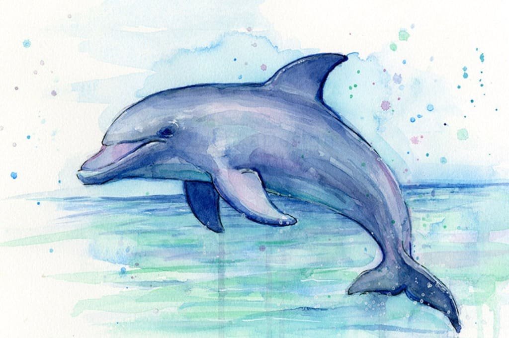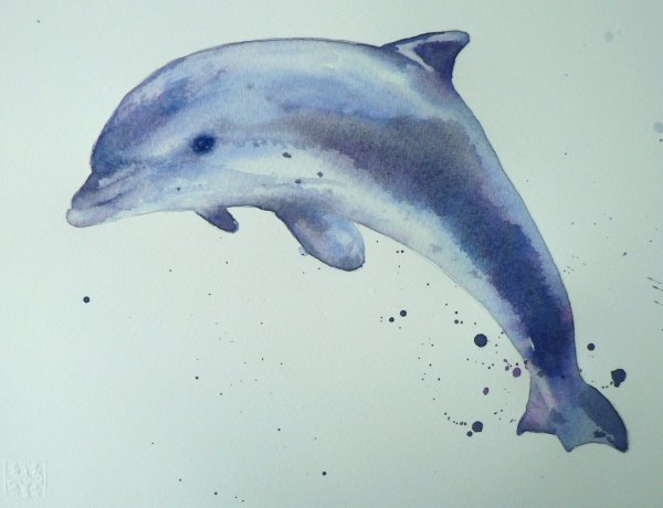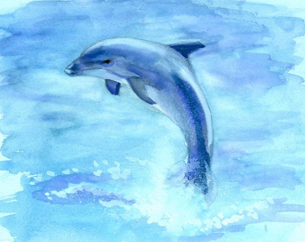 ![Дельфин акварелью]()