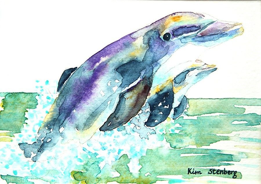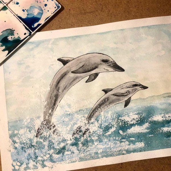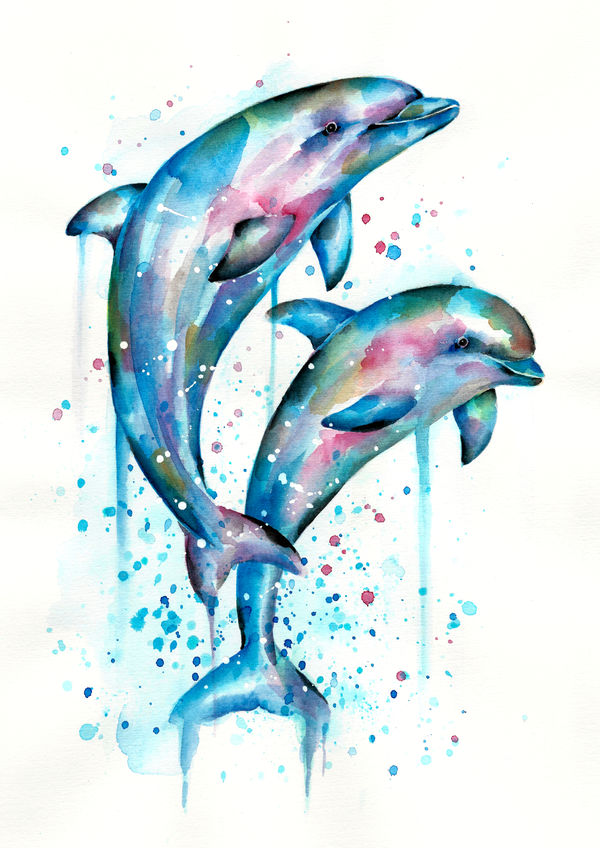 ![Дельфины акварелью]()