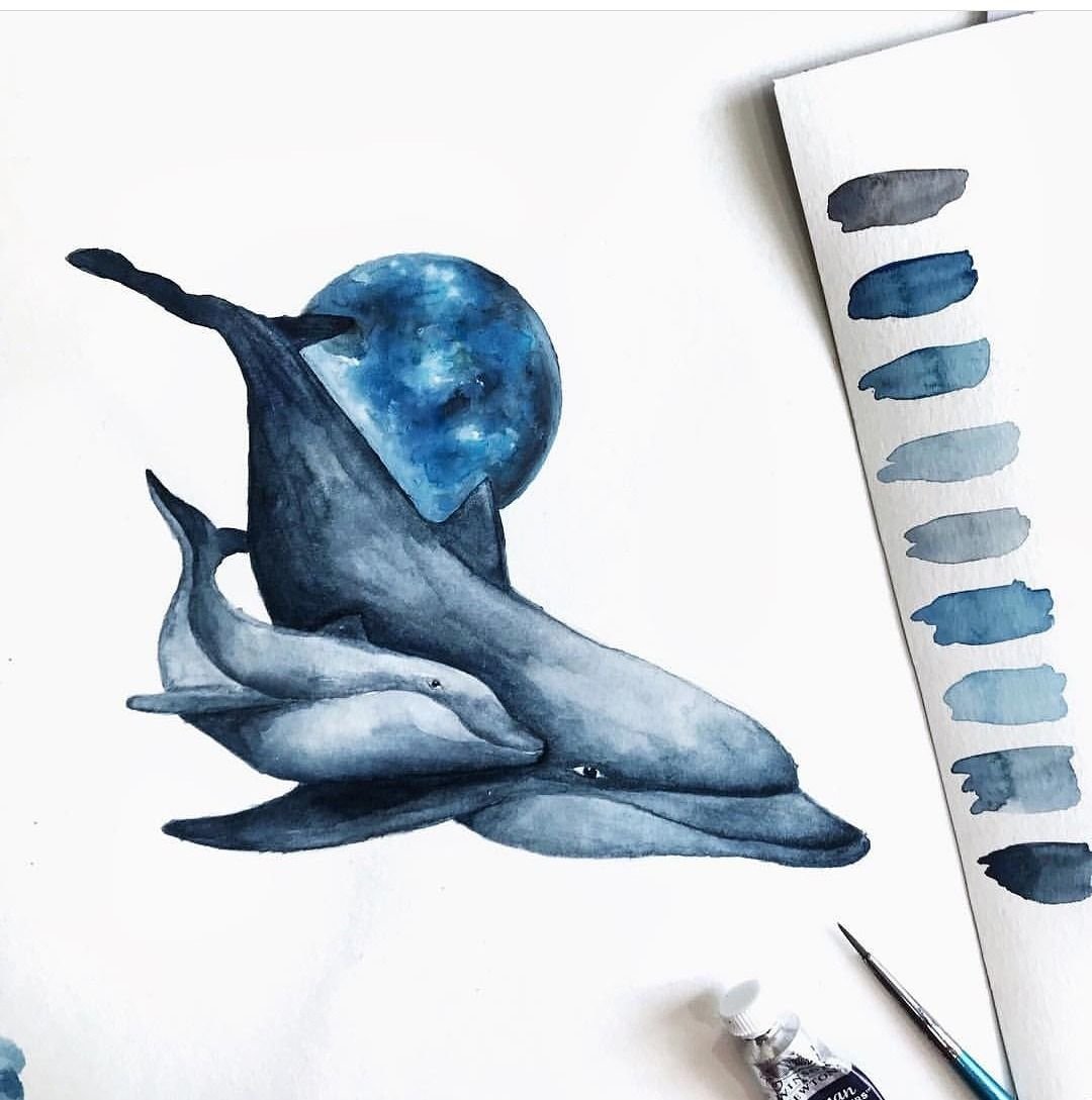 ![Дельфин скетч акварелью]()
