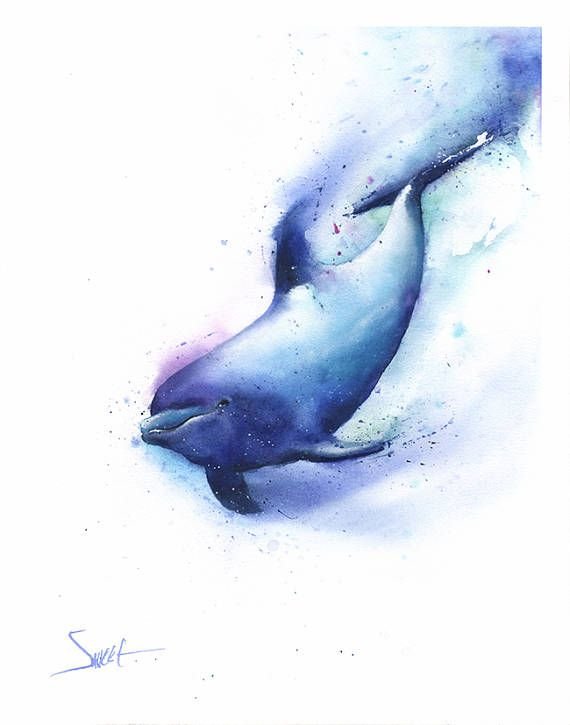 Дельфин рисунок акварелью легко (50 фото)