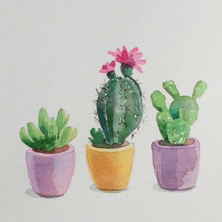 ![Кактус опунция акварелью]()