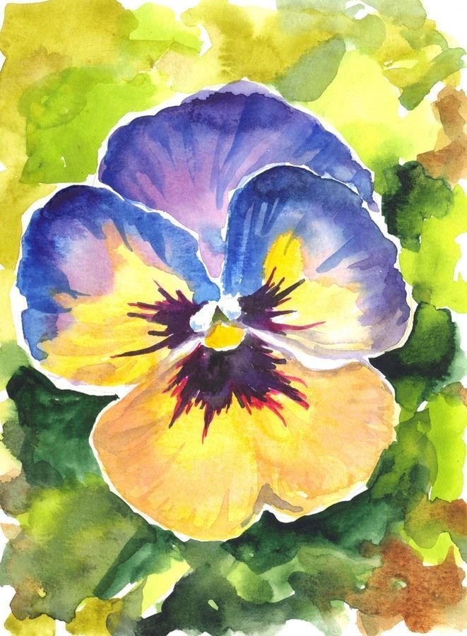 Анютины глазки цветы акварель