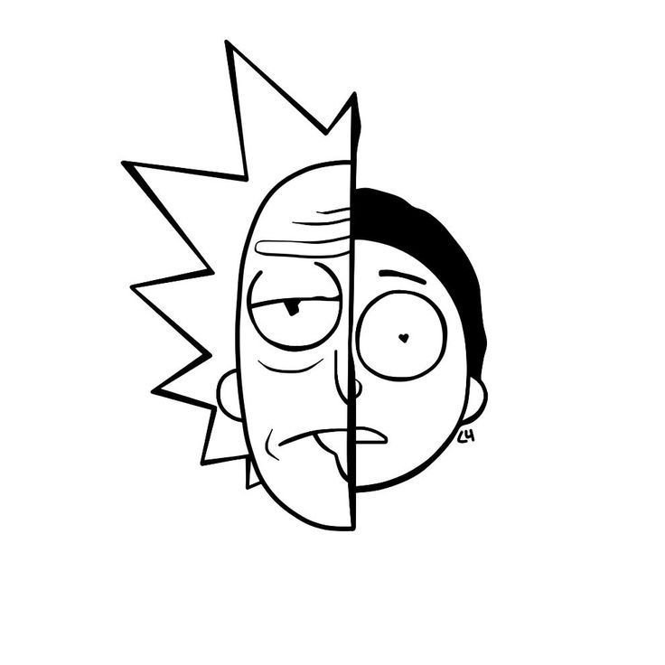 Наклейки Рик и Морти чёрно белые