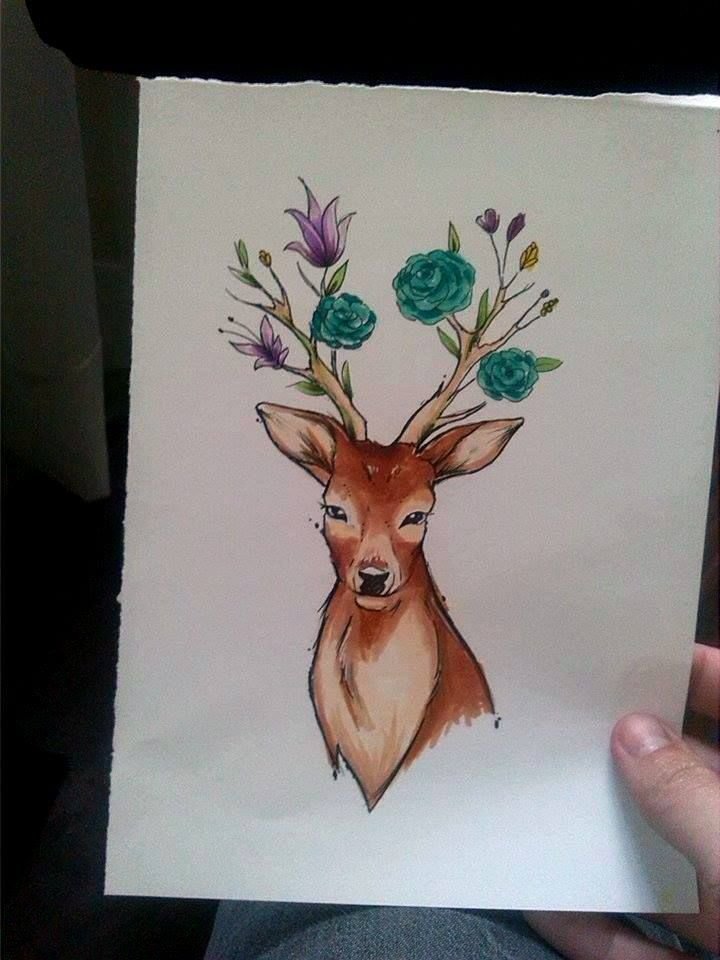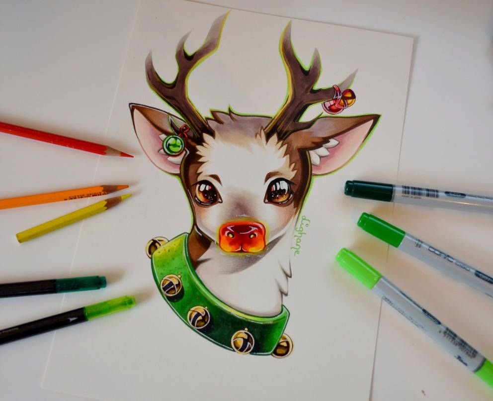 Олень скетч маркерами