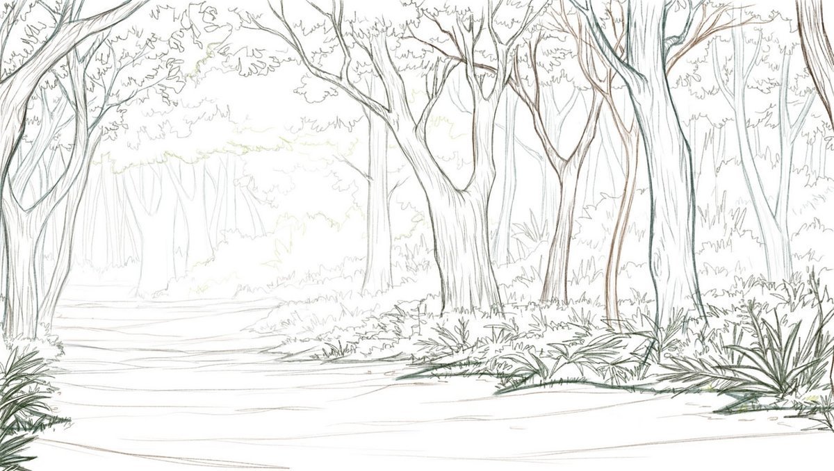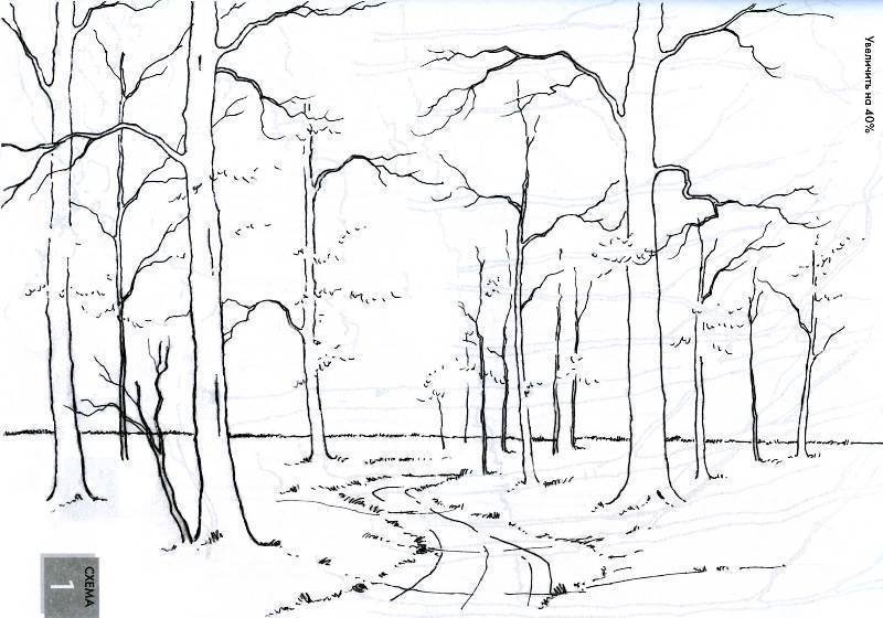 Рисунки леса карандашом для начинающих