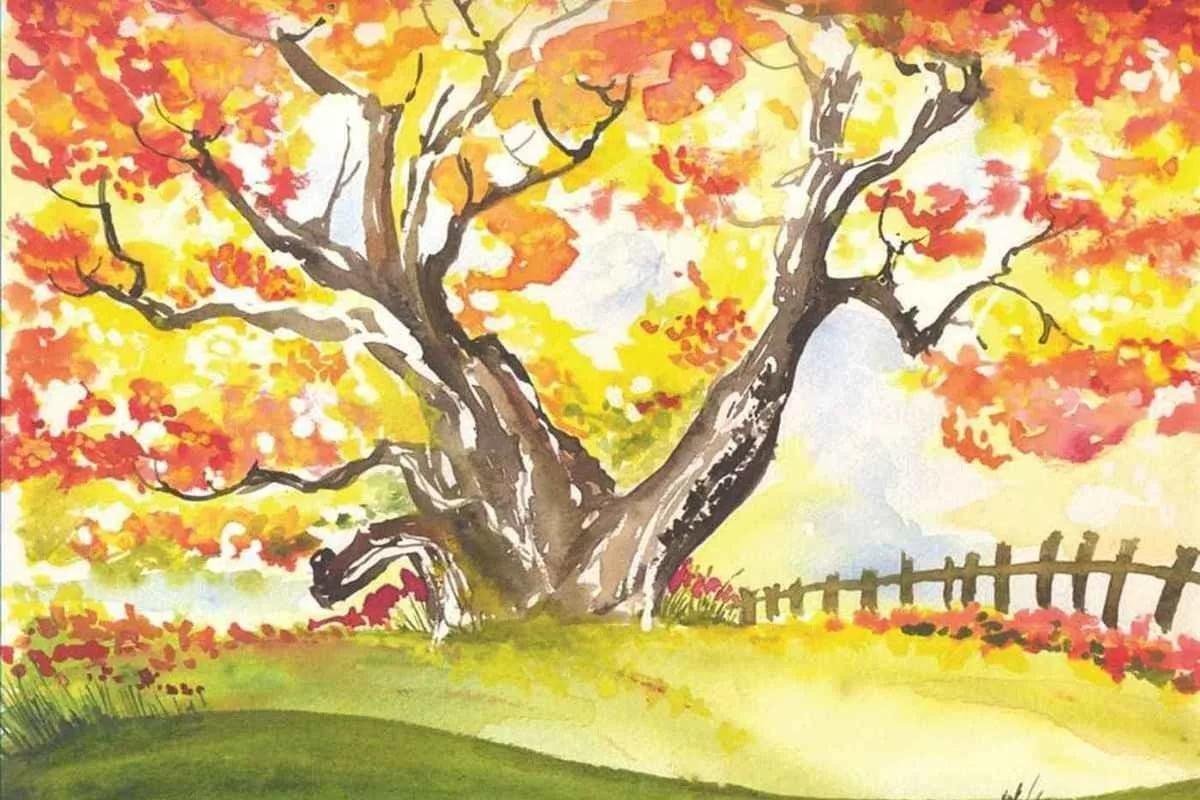 Рисование осеннего пейзажа акварелью