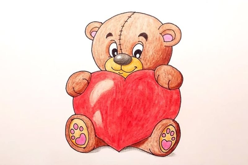 Мишка с сердечком рисунок