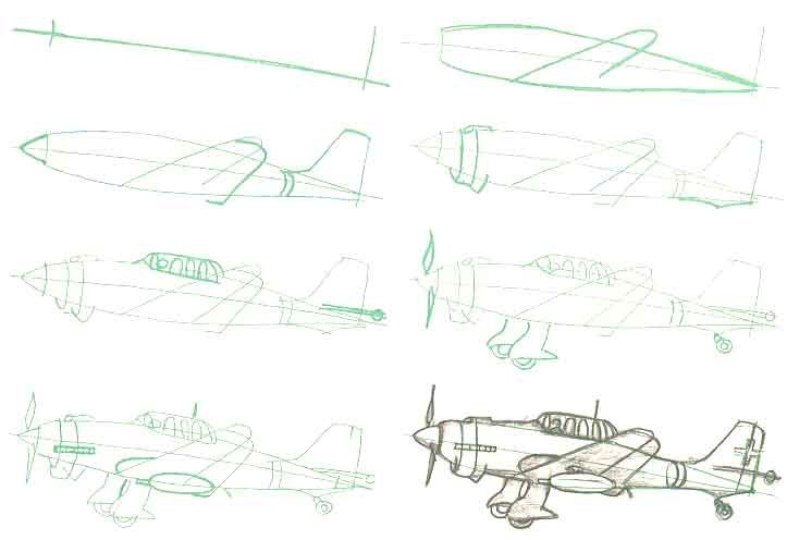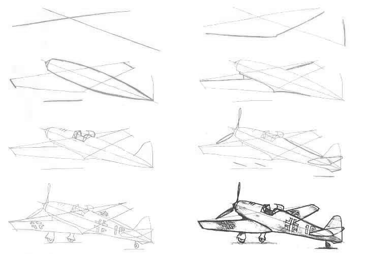 Пошаговое рисование самолета
