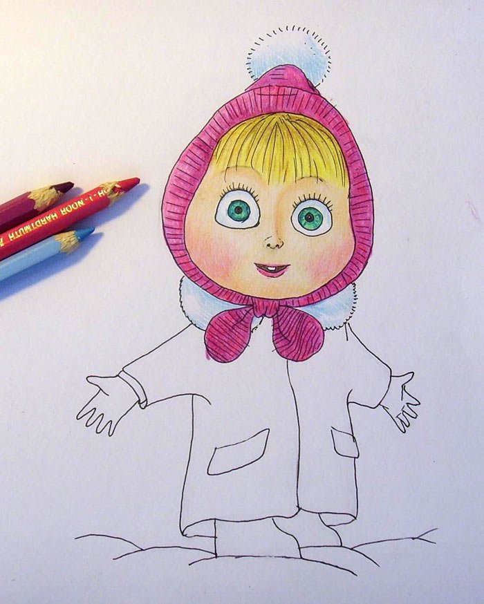 Рисуем Машу из мультфильма Маша и медведь