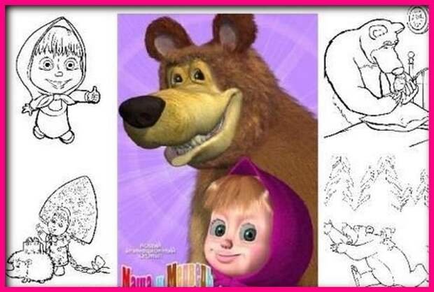 Маша и медведь для срисовки