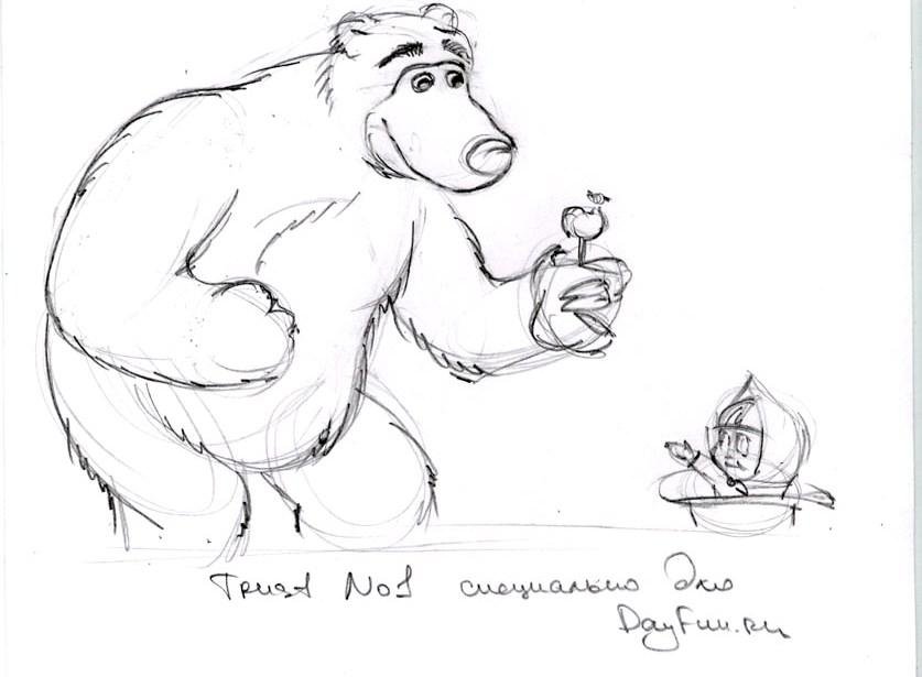 Маша и медведь рисунок карандашом