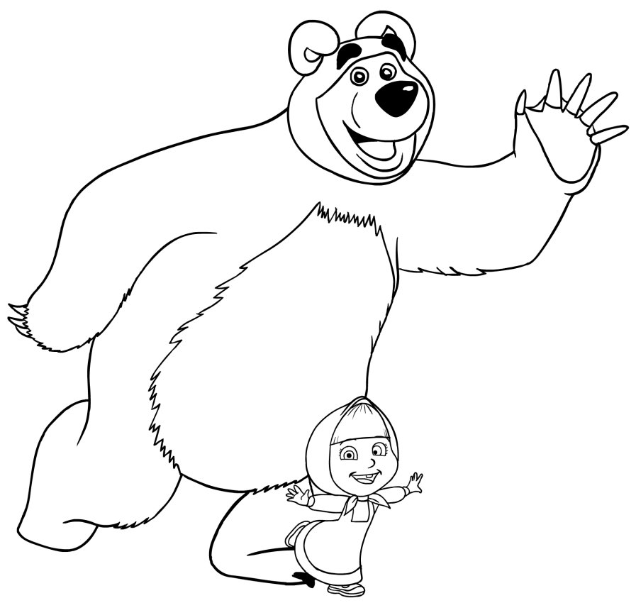 Распечатка Маша и медведь раскраска
